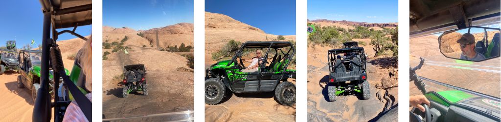 Hands down the most exhilarating experience we had in Utah, even on our whole 6-month trip out west, was driving 4×4 UTVs in Moab. They took us to an area called Slickrock Trail, and with it is Hell’s Revenge. There were several UTVs in a row, and we all followed a guide. It was fun being able to do the driving ourselves, yet be able to follow someone experienced on these trails. The inclines and descents were SO steep, I would never think it would be possible to drive up and down them. But these very grippy vehicles had no problem at all.