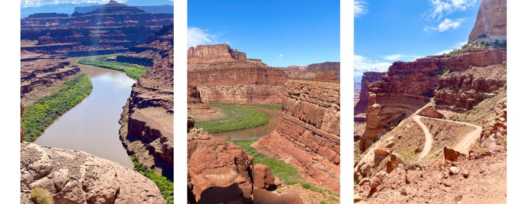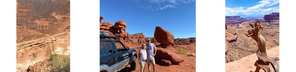 ⚠️ To get to the exact spot it’s best if you do a 4×4 tour because there are some private roads, and rough muddy paths that need high clearance vehicles. We did a half-day tour with NAVTECH Expeditions. This tour also took us up the winding Shafer Trail, and saw ancient hieroglyphics, pictured below. We wouldn’t have seen these areas had we not gone with this 4×4 expedition.