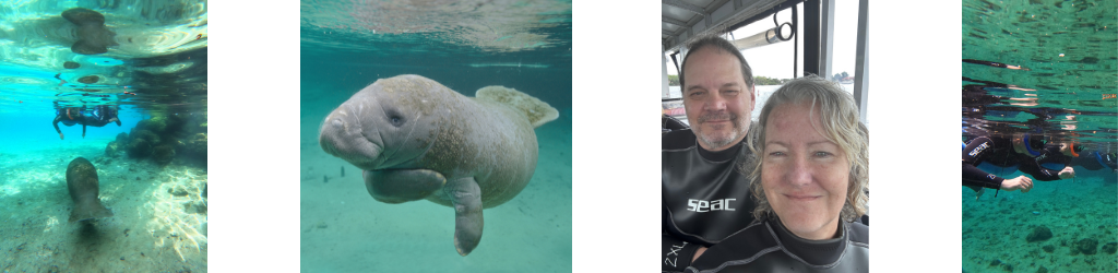We went with a company called Fun 2 Dive, and we had a great experience. They have wetsuits, snorkels and masks. They knew just where to look for the manatees, since most were already out in the gulf at the end of March. We got to Three Sisters Spring ahead of other boats, and were able to peacefully watch some manatees before it got too crowded. We were in the water about 1.5 hrs, and the whole experience, including a safety video, was 3 hours.